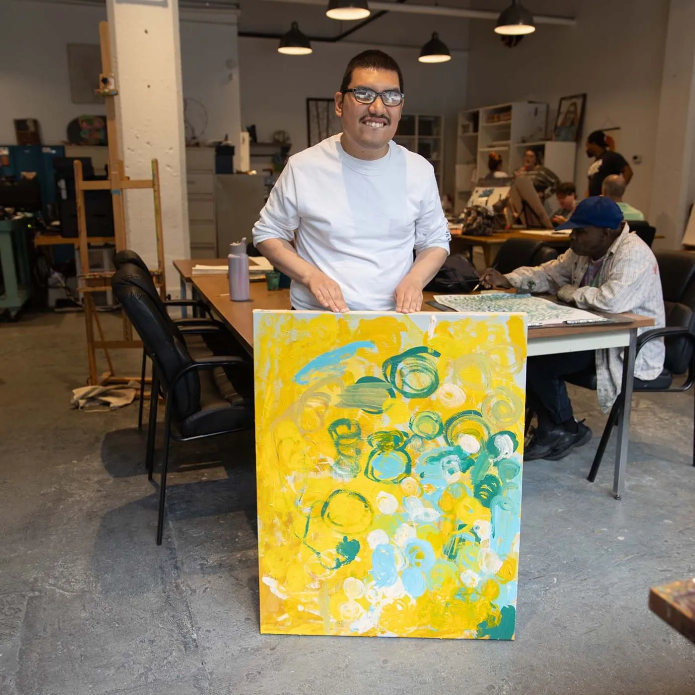 Maggie Daly Arts Cooperative artists face unique challenges that exemplify resilience and creativity. Among them is Leo Contreras, a beloved non-verbal artist whose deeply personal and beautiful work serves as his voice, expressing what words cannot.